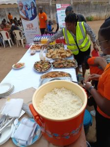 Le moment fort de la journée fut le repas partagé. Un buffet a été dressé par Zanga Michel, un ancien enfant de la rue actuellement inscrit en formation hôtelière au Centre de Promotion de la Femme et de la Famille (CPFF) de Nkoldongo, grâce au soutien de HHODE. Aidé par les équipes présentes, il a préparé avec soin des plats nourrissants et savoureux, symboles d’un avenir meilleur construit sur la solidarité et la réinsertion.